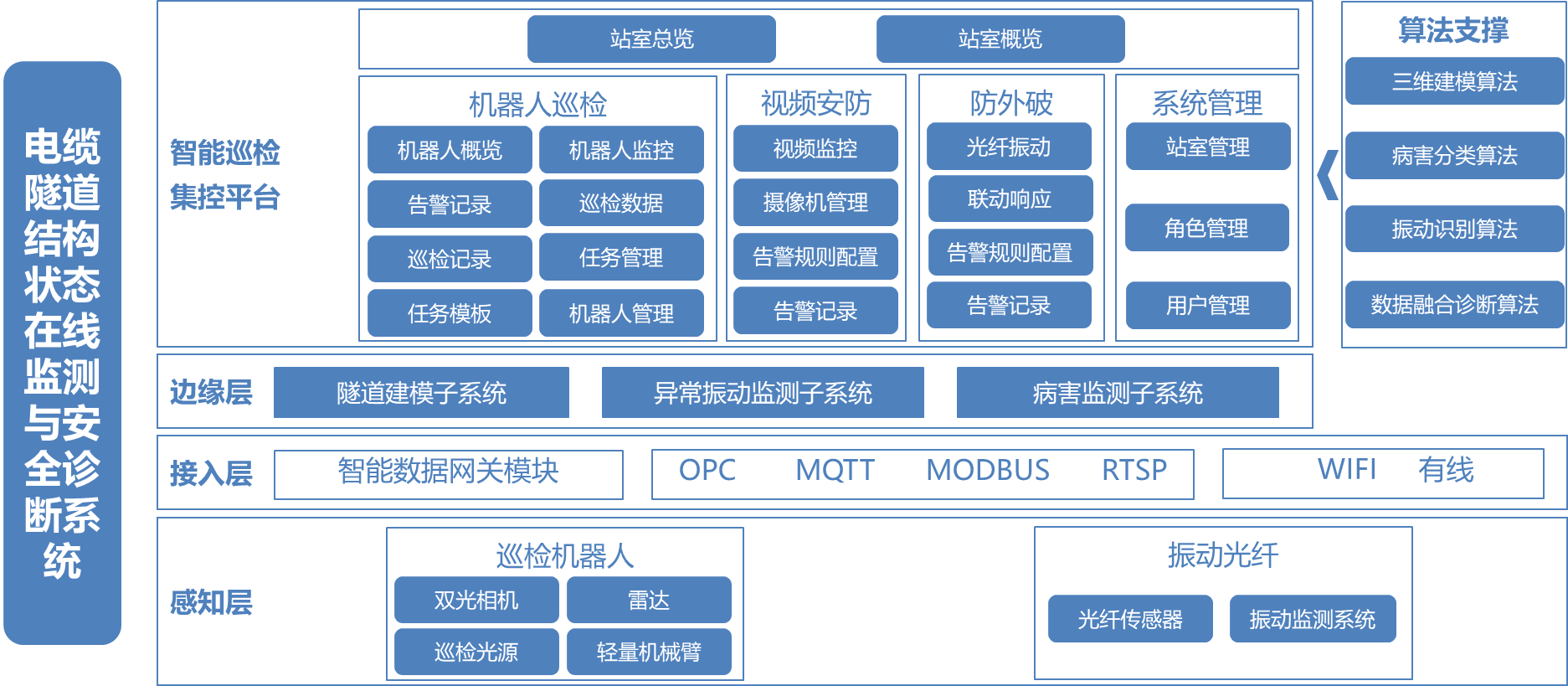 随着城市建设的快速发展,近年来电网投运的电缆隧道数量和长度日益增长,但受地质条件、外部施工等内外部多种因素的共同影响,电缆隧道容易出现裂损、渗漏水、结构侵蚀等问题,影响着电缆隧道的安全性和耐久性。现阶段运维人员对电缆隧道结构缺乏专业、高效的监测手段,且大多数员工为电气专业,对结构病害情况、原理掌握不深,亟需建立一套行之有效的数字化管理系统辅助运维人员开展电缆隧道结构运行状态评估。